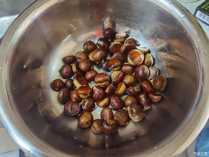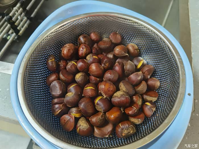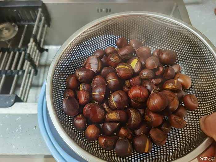 把栗子煮好了,捞出来控水,这时候开栗子,基本上都已经开口了。