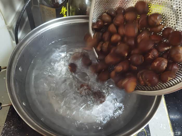锅上做水,水开后把处理好的栗子倒进去煮十分钟。
