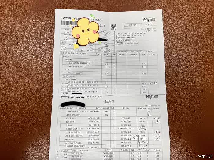 时间好不经用,转眼喜提我的雅阁已经8个月了。关于广汽本田的车型定保通常是5000公里或6个月,以先到为准。个人习惯提前预约,一早到店不用排队。这样既节约了自己的时间,也便于他们的工作安排。关键是预约工时可以打9折。这家店的工时有点贵,雅阁的原价280元,锋范150元,预约打9折。之前那家工时雅阁220元,锋范120元,预约还能打8折。可惜解约闭店了,伤心3秒钟。