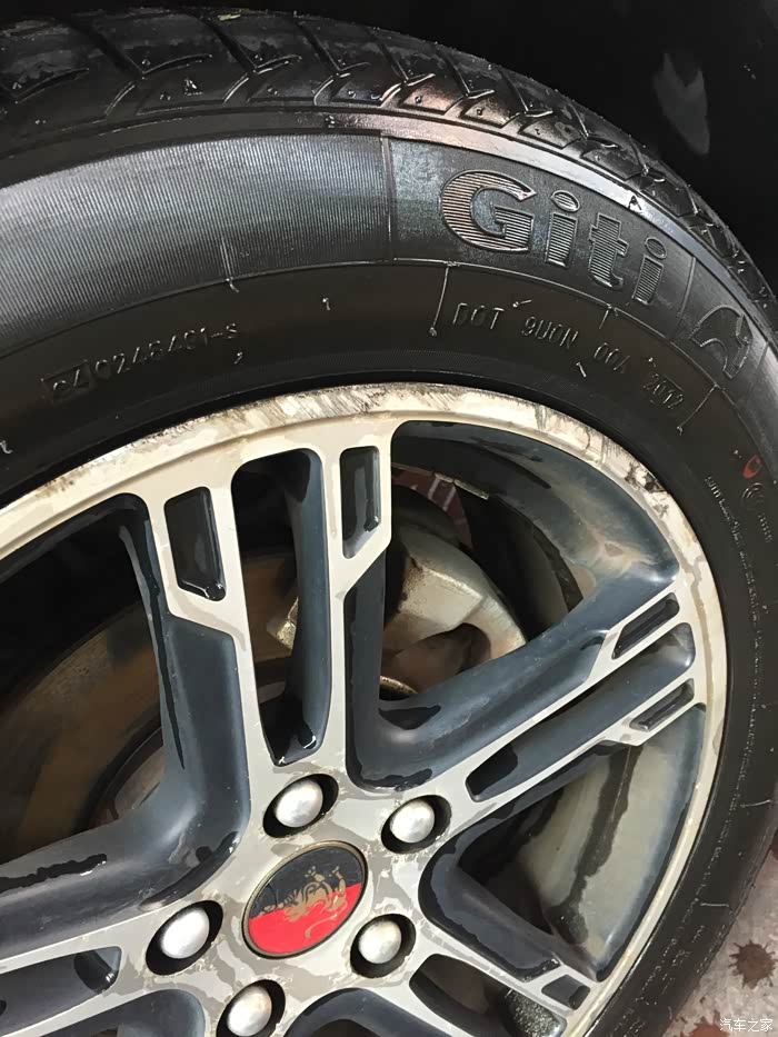 检查轮胎及刹车片,这是半个月前不小心碰到路沿轮毂受伤了,轮胎侧面被破了个小洞约3mm深,虽然没伤到内胎,也火补了,不过我因为是前轮(换完轮胎才跑了1万公里,换到后轮也不见得好),我就把备胎换上去了;