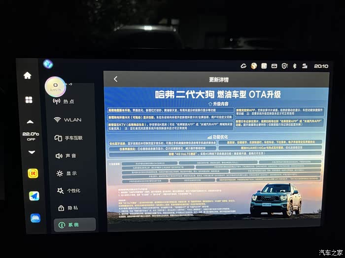 12月23日,哈弗二代大狗迎来了车机OTA升级的推送,我来详细给大家介绍一下。