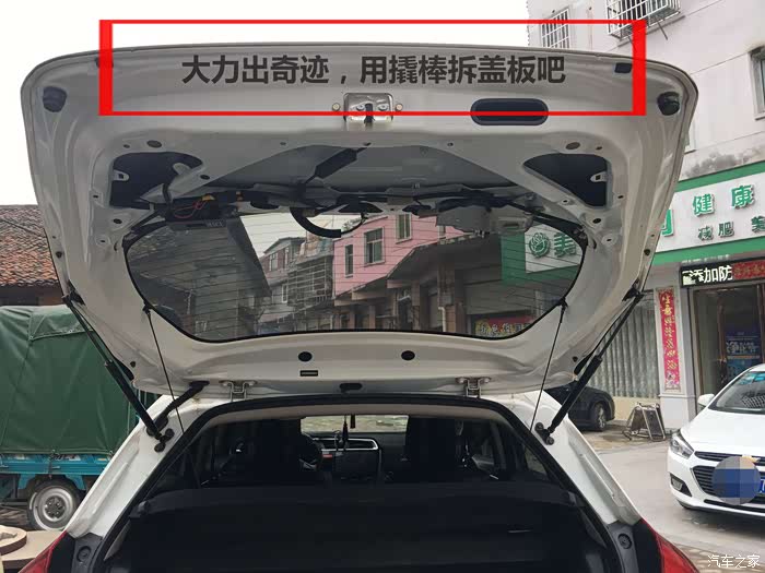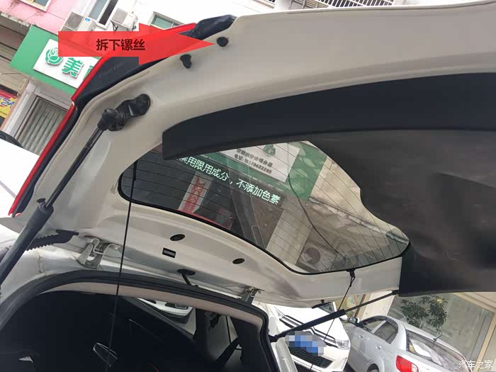 这个更简单了,打开后备箱后和后排座门,拉出封门胶条(好像是这么个叫法),撬开盖板。上套桶扳手(买卡扣有送工具),然后拆就可以了。