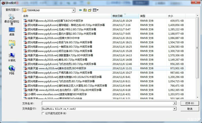 5:一切设置妥当,然后进入添加转换的视频文件部分,选择添加文件,可以按住Ctrl 键点选多部电影并打开。