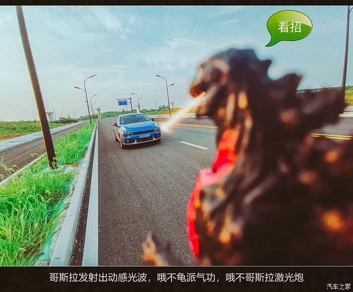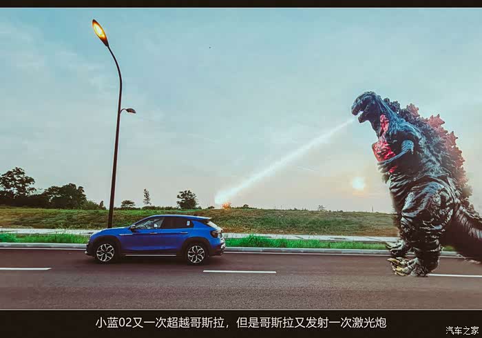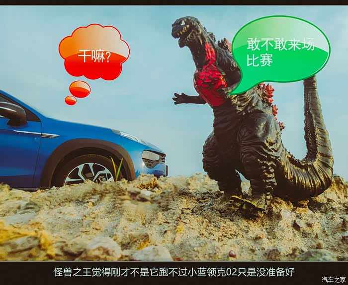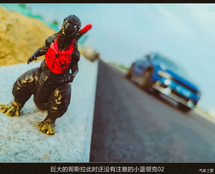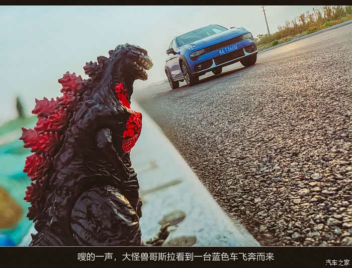 最近六一儿童节,我家小侄子由于父母上班忙最近由我母亲帮忙照看,小侄子在这段时间里在我加寄宿,他最喜欢的玩具就是他的小汽车和恐龙,还真别说我在这个小侄子特别喜欢汽车,基本上路面上跑的汽车他都能认识,虽然他话都说不太清楚,但是就是能认识很多的车,能叫出它们的名字,刚好看到怪兽哥斯拉上映 于是我决定买点哥斯拉恐龙玩具送给我的小侄子,我的小侄子经常就拿着怪兽追打他的小汽车玩具,天天就说舅舅开车,豆豆是怪兽(小侄子小名叫豆豆),这时候灵光乍现,我就想拍点怪兽哥斯拉追赶我的小蓝领克02的场景,也算完成了儿时的幻想,想到什么就去干什么一直是我的作风,于是开着怪兽般的领克02,拍下了一组怪兽与领克02的幼稚童年幻想!