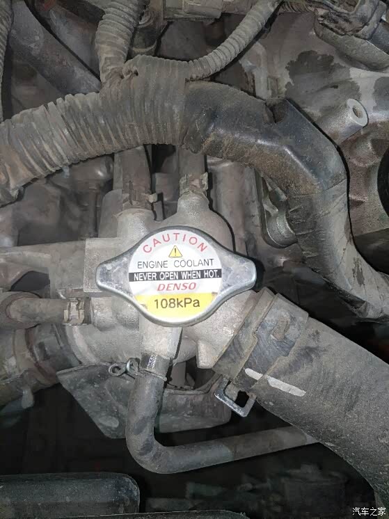 还是从简到难开始检查,检查一下防冻液的状况,这车还使用了副厂的水箱盖。