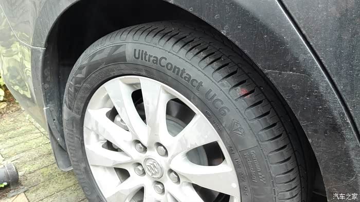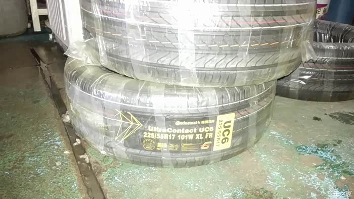但昨天下午下班,快到家了还被路上一块锋利瓷砖碎片直接报废了左前胎,把固特异胎面直接刺穿一个大口,估计有2公分开口,2分钟不到240的胎压就漏完了,考虑到补胎已经没有意义了,就雨中开到路边艰难取出备胎换胎!20多分钟雨中换胎的艰辛和路人的目光让我尴尬,很是无奈和难堪!又考虑到其他几个胎都有4-5个补丁了,为了安全,也为了诗和远方,很快决定4轮全换新胎!马牌MC5虽好,但太老了型号,既然新产品UC6厂家吹得那么牛,各路媒体的评测也是给予很高评价,特别是我追求的操控和静音舒适的平衡达到了一个新的高度,瞬间决定勇敢尝试一下全新马牌UC6,全车全新UC6,趁着还算年轻,任性一把吧,男人,对自己下手就要狠点!