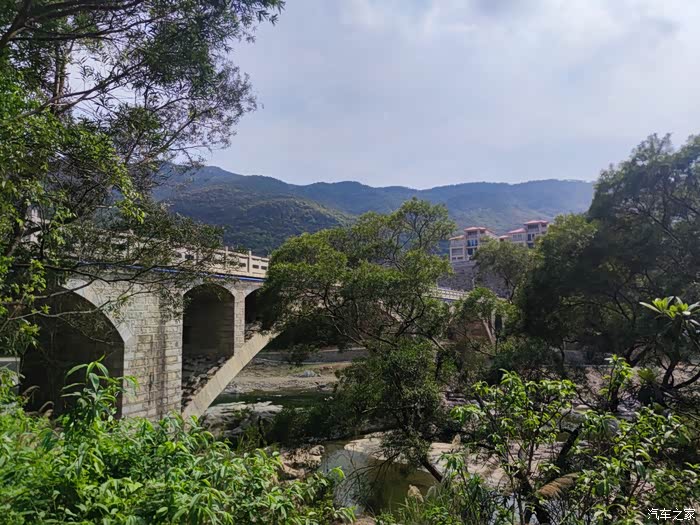 行驶约四十分钟就到了大桥。这是一座石拱桥。横跨整个山谷。连接两岸居民。大桥可以通车。本想给大桥拍个全貌。奈何被一片枇杷林挡住了。这正是采摘枇杷的时候。为了避嫌,不敢进入果园。没有全景,半身像也不错。