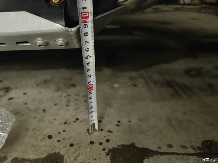升级后的前减震比原来长了许多,车身高度也有了变化。这是升级前我量的油底壳护板离地间隙,