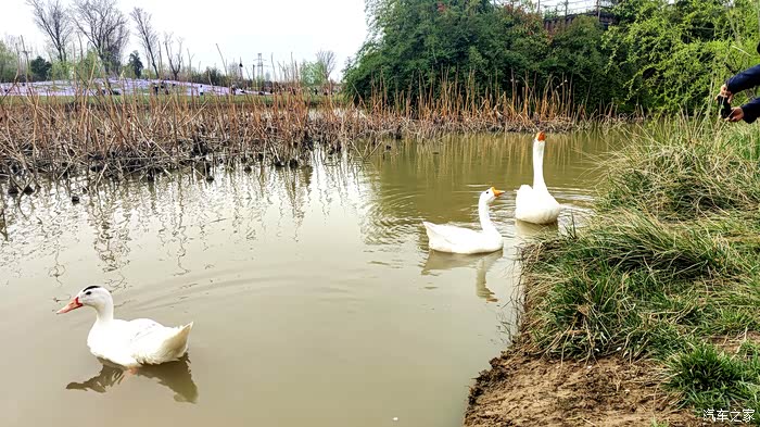 池塘中大鹅欢快的引颈高歌,仿佛在赞美春天的到来。