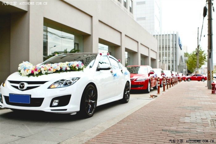 大婚当天,自己的爱车做主婚车,车友会里叫了统一的红色马六,虽然没有豪车,但是在路上依然很抢眼球