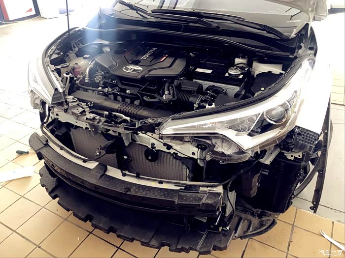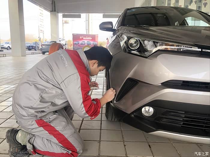 前杠下围也不知道什么时候碰到的,小师傅一并处理了。