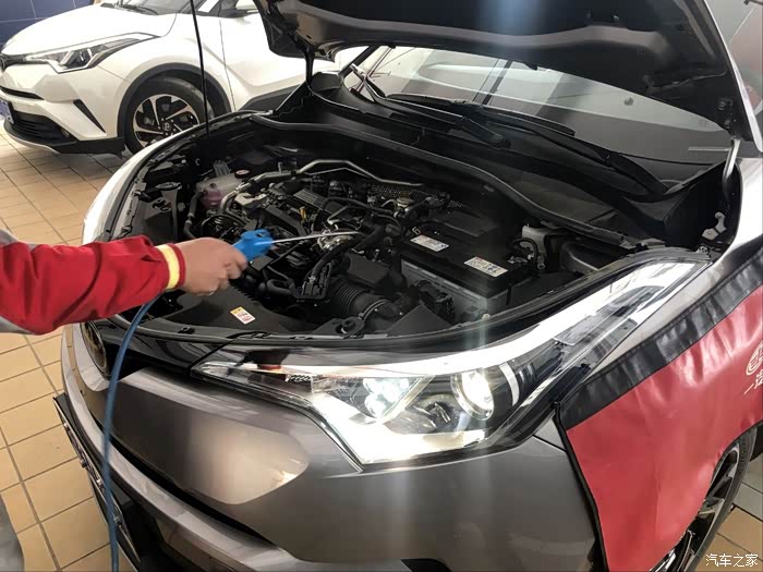 发动机舱除尘,这次没清洗发动机舱,不是很脏,压缩空气吹吹就好。