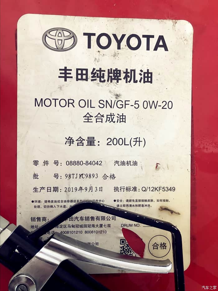 首保加的是大桶(200L)的全合成机油,问了4S师傅,确认和4L小桶装机油一样。