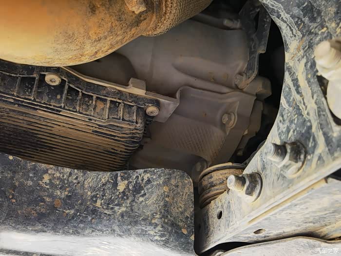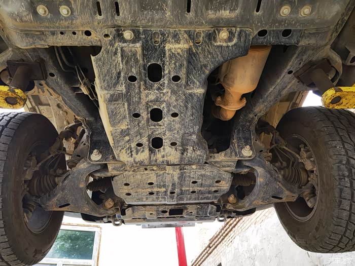因为买的高配车型有三块护板后面分动箱差一块之前装了铝镁合金的这样看起来从容多了 ,看见前面那个小方孔了吗那是我上次换机油找师傅割开的, 厂家这个做的有点扭曲没有设计放油孔。