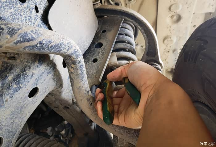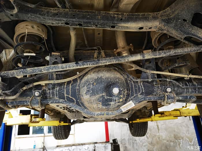换了隔壁家老板不错进去一顿寒暄问我国产车怎么样什么问题,说明来意后示意让我开到龙门架上因为车重2.3吨只能上这个举升机举不起来