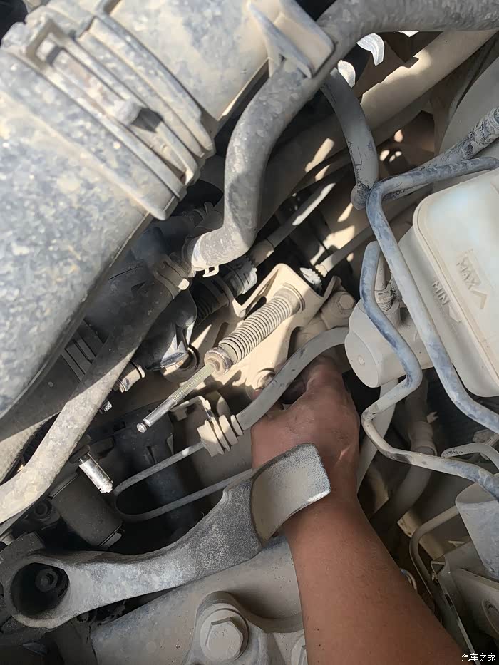手动挡拉线锁死以后,先拔掉挡把固定销,然后去机舱解锁挂挡轴就可以了,本次维修就完成了