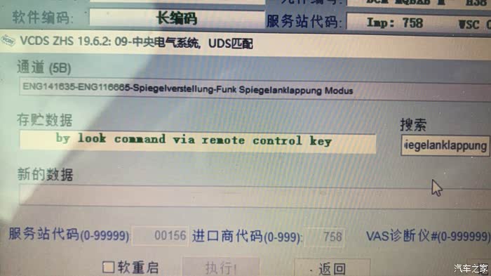 找到Spiegelanklappung Modus 改为by look command via remote control key