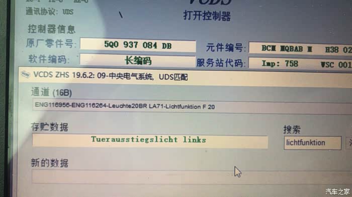 找到lichtfunktion F20 改为tuerausstiegslicht links