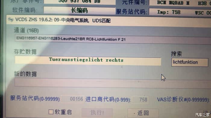 找到lichtfunktion F21 改为tuerausstiegslicht rechts