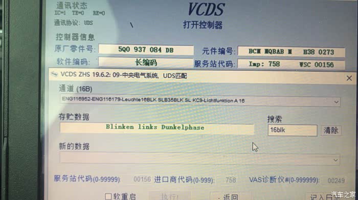 找到Lichtfunktion A16 改为blinken links dunkelphase