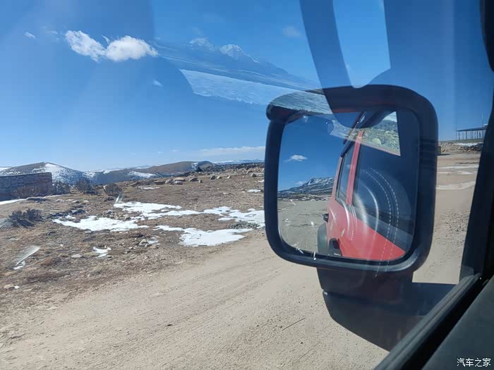 这个后视镜也是挺宽大的。背后的蓝天白云雪山都尽收眼底。