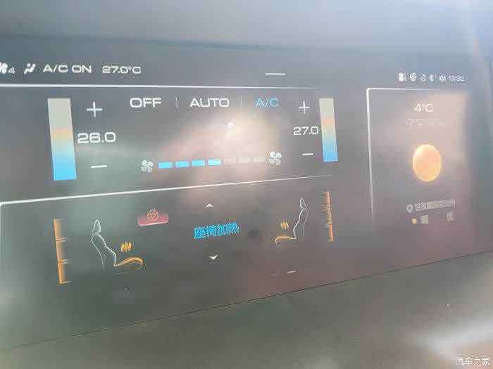 这么冷的天,一定要打开座椅加热,方向盘加热啊。暖气也打开了。