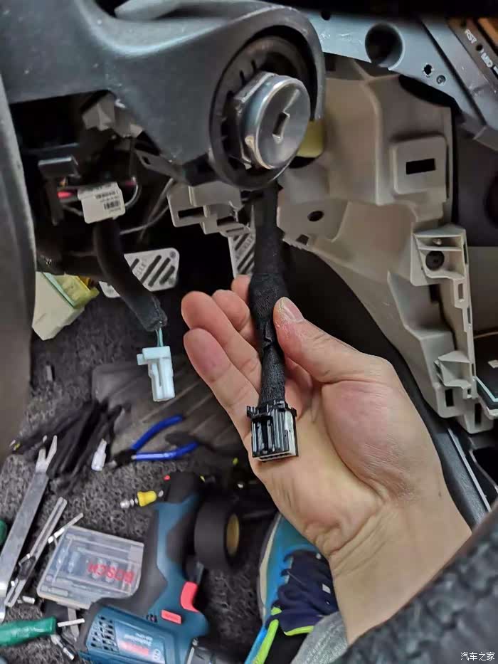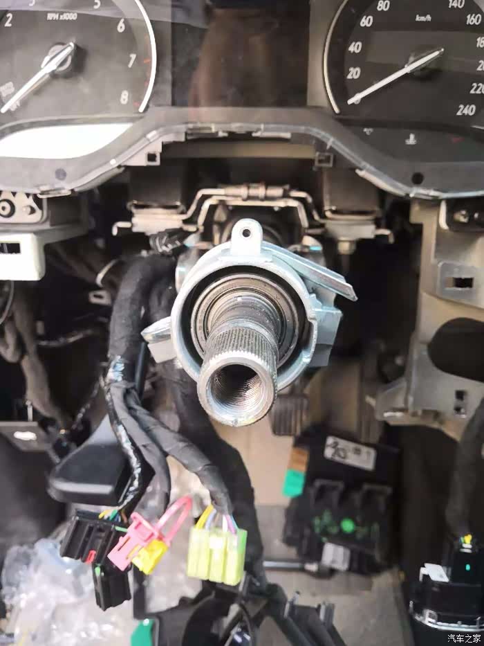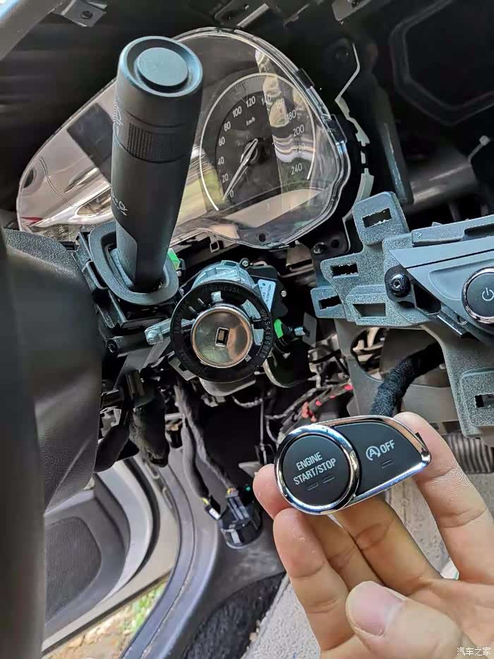 锁芯锯掉,这里解释一下为什么锯掉。事实上15-16款豪华一键启动是没有方向立柱锁块的,17款才有方向立柱锁块。换一个方向立柱加锁块,得大几千,考虑到成本和实用性就没换立柱加锁块。个人觉得没必要。