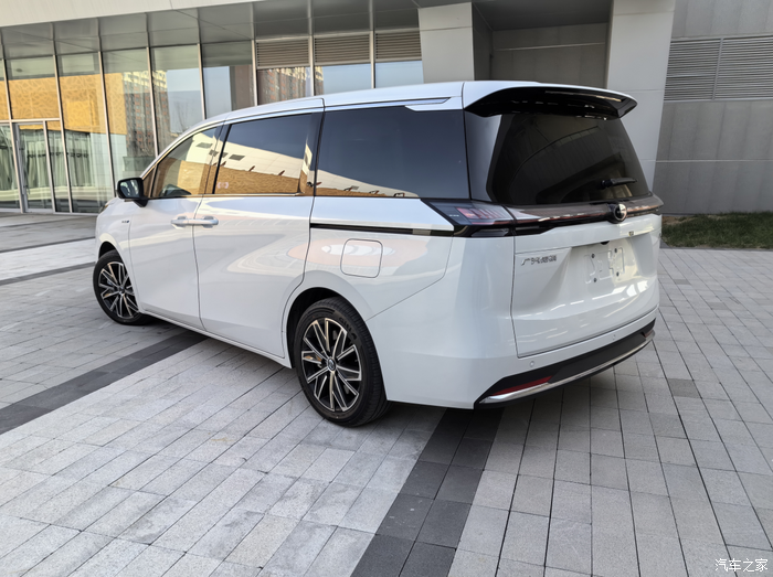 车身侧面的线条流畅又自然,看起来比较运动。让整个车身看起来也不是太臃肿,传祺E8也采用悬浮车顶的设计,让它看起来更加的时尚,有一种未来感。轮毂的造型也比较好看,转动起来的效果也是可以的,和整个车身也比较的搭。