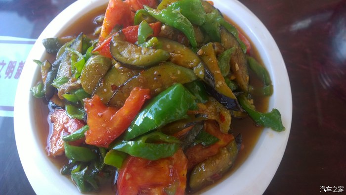 当地名菜,敦煌拉条子,茄辣西,就是茄子,辣椒,西红柿一起炒
