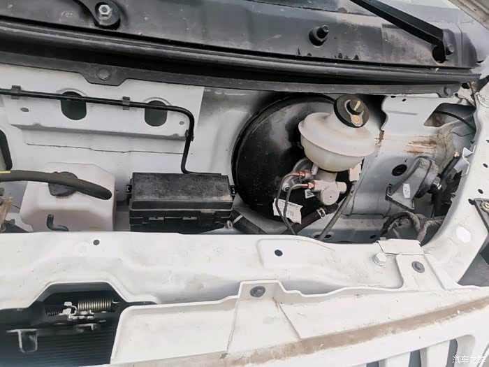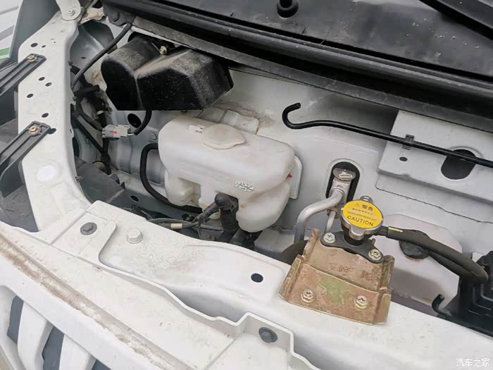 引擎盖下面的防撞梁,是那种整体的结构,没有焊接点,让人看了心里就踏实,各种水箱也是整齐的排列,非常的规矩。
