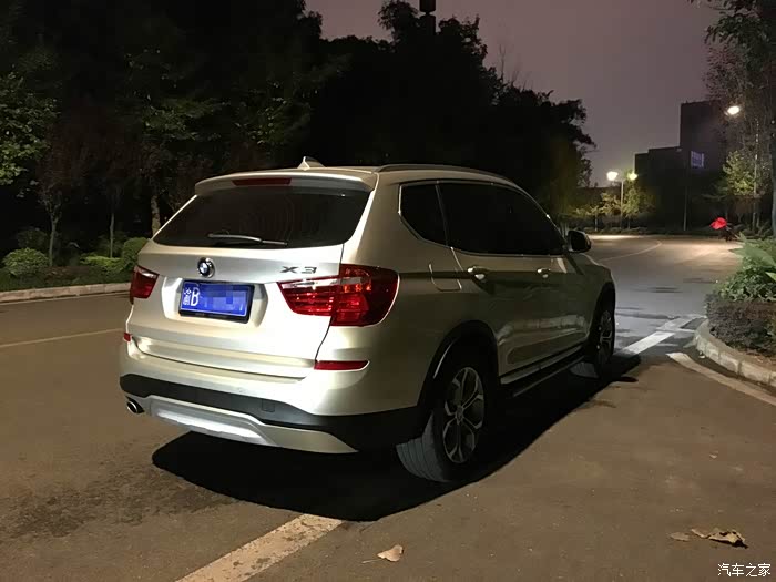 第一辆车是宝马318i,2010年买的,用了5年多一直很顺畅,机械助力的方向盘+后驱动,开起来很爽,当然,除了动力差一点。说说X3吧,再换车之前也关注了很久了,一直在等待GLC上市,谁知就在上市前,买了X3,说起来应该还是由于那份宝马的情怀吧,习惯了宝马的操作和感觉。也是那天闲来无事,跑去4S看看,结果一看就定下来了,自认为对X3已经很了解了,就没有试驾,提车之后开了这几天,第一感觉就是跟3系完全不一样了,特别是我那机械助力的3系,开X3的感觉反而跟开GLK的感觉比较接近,估计是因为SUV,又是换了电子助力的缘故吧,没有那种开3系很想加速的冲动了。
