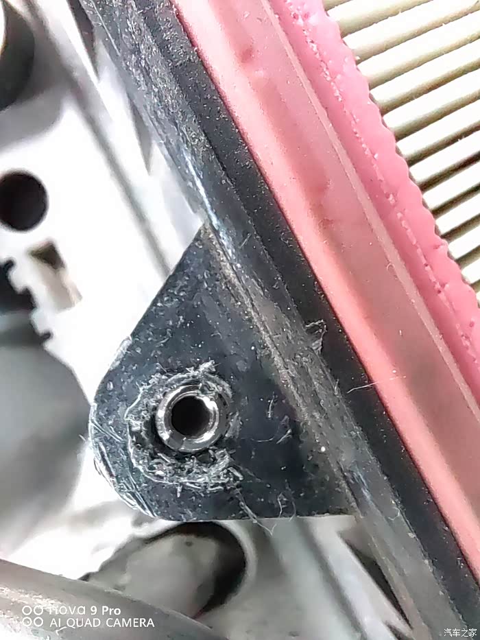 由于空滤盒上下都是塑料件螺丝设计的是自攻螺丝,在多次拆装后,孔洞越来越大,导致了螺丝不能拧紧空滤盒盖子。我想过买个新的但是空气滤要经常换,要经常拆卸就算新的拆卸几次一样孔滑丝。这也不是个办法。我准备自己处理下