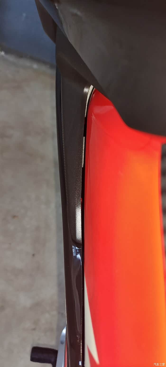 豪爵在细节上的把控确实可以,油箱和前部覆盖件之间用橡胶(泡沫?)做了分隔,防止挤压产生的异响~