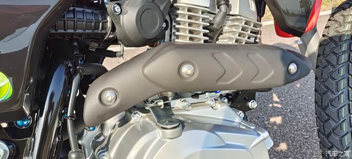 NK150的排气管是林道车标准的上行走线,排气头段离腿很近,盛夏时节如果不穿长裤绝壁烤腿毛的程度。ABS版虽防烫板后端做了加长,然鹅并没有多少卵用,滚滚热浪滋扰不断,红灯不熄火的话两条腿有的忙了