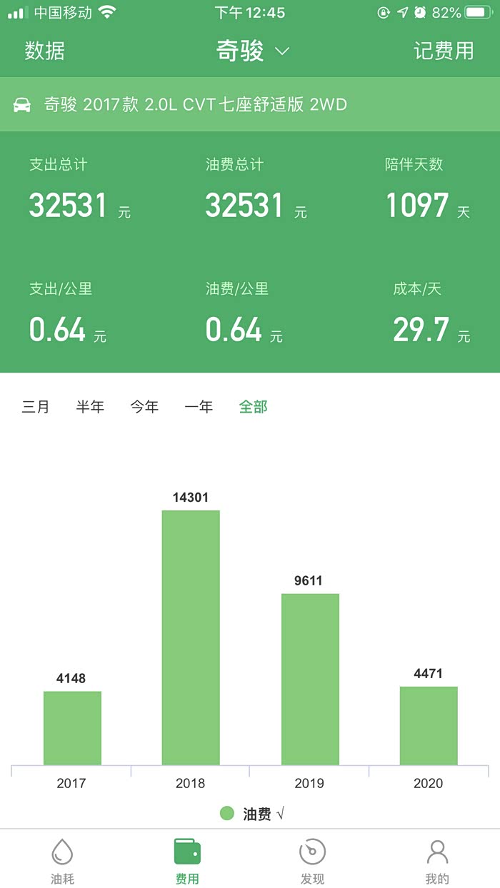 记录方法:每次加满,而且用小熊油耗APP,每次加油就马上记录,APP会综合计算每次记录计算出综合油耗。