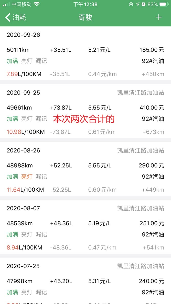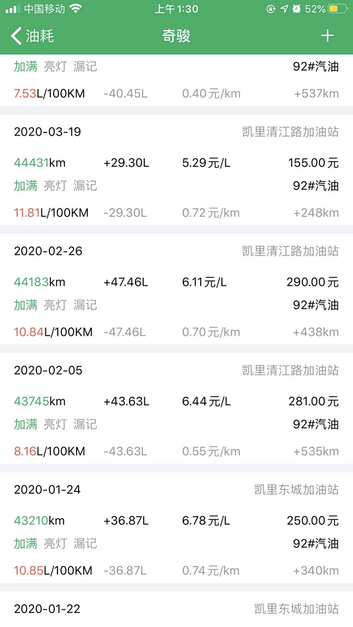 买车容易,养车难,加油是日常最主要的支出,给大家分享一下我家奇骏的油耗。其实,夏天在市区开空调都是10个、11个,高速不激情驾驶什么车都省油,综合下来是9.3个油。 我从4S提车到加油站去加油仪表显示10公里,从第一次加油开始,我就有一个习惯,每次加油都是加满,重点是我每次加满,每次加满。每次加满,重要的事情说三次。