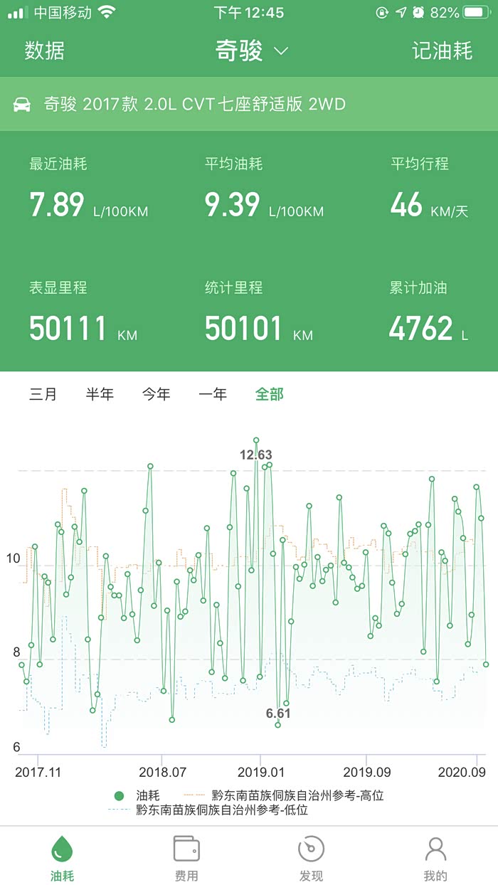 提车到现在5万公里加油费用。其实,说到油耗,很多时候和驾驶者的驾驶习惯也是有关的,有空我也得练练这“黄金右脚”,用力不用太猛,哈哈,看很多车友的平均油耗是比我要低一些的。