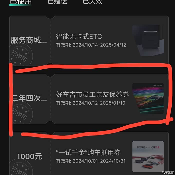 这亲友券购车得时候销售居然没告诉我,我自己某音视频看到的,我有朋友在吉利,让他帮我申请三四天就下来了,送的是三年4次保养,省了三四千保养钱,一定在提车开票前申请下来,闲🐟上有人操作,可入。