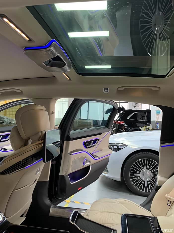 22款奔驰迈巴赫S480,前后原厂旋转高音,桃木条纹内饰板,五座改四座,电动门,手势,国产锻造大饼轮毂轮胎