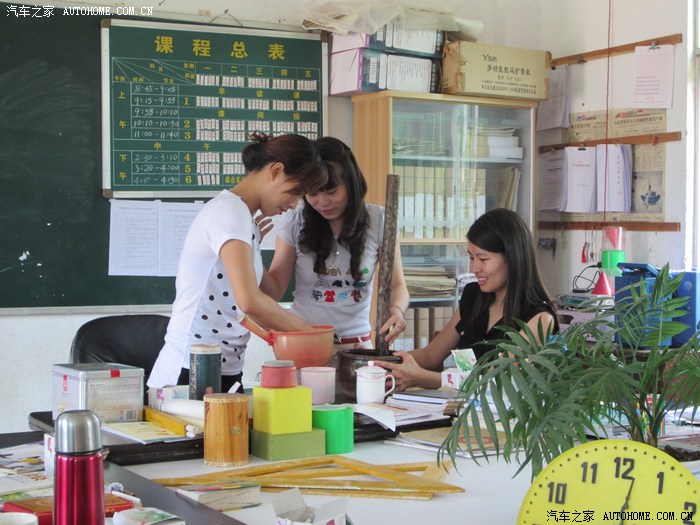 最近女老师们都喜欢上了擂咸茶,不用上课时,擂上一盆