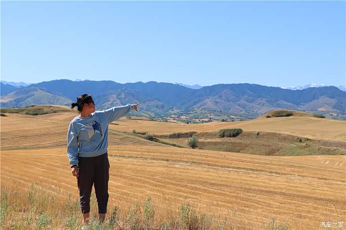 别说,这条路上的景色不亚于一些4A景区,和奇台县著名的江布拉克景区有点相似,山上都是以麦田为主,我们这个季节来到这条路上,小麦已经全部成熟了,一片金黄,已经开始大面积丰收,这么美的景色,必须停车先感受一番。把车子开进收割完的麦田里撒欢跑一圈,,牧马人车主表示就不想走正常的道路,要是我以前的DM电四驱我也一路走这样道路,事实证明我的DMI也没有那么差的,能跟着牧马人走,压力不大,麦田里刚下过雨有点湿软,但是车子也不一点不逊色,一下上一个大上坡,一下下个大下坡,一点都没有压力。我们一路走的麦地,一边走一边欣赏美景一边拍照。