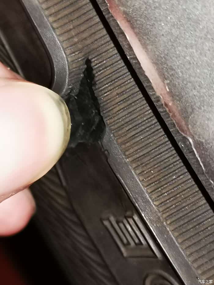 轮胎裂口,在侧面,虽然都说侧面这个位置轮胎比较厚,为了保险起见,还是更换。