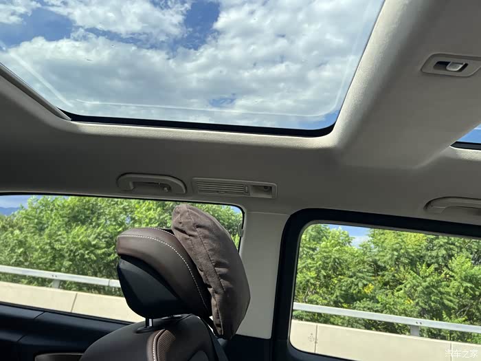 其七,这车天窗虽大,但却不属于我。两个天窗分别在二排和三排的头顶。司机的头顶是钢板。这样设计不如GL8,不便于吸烟。