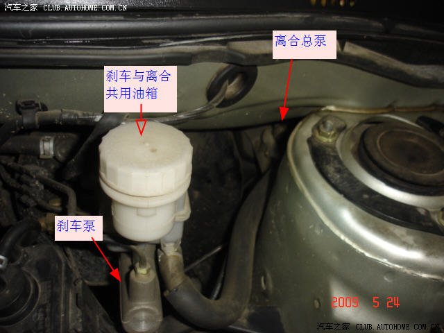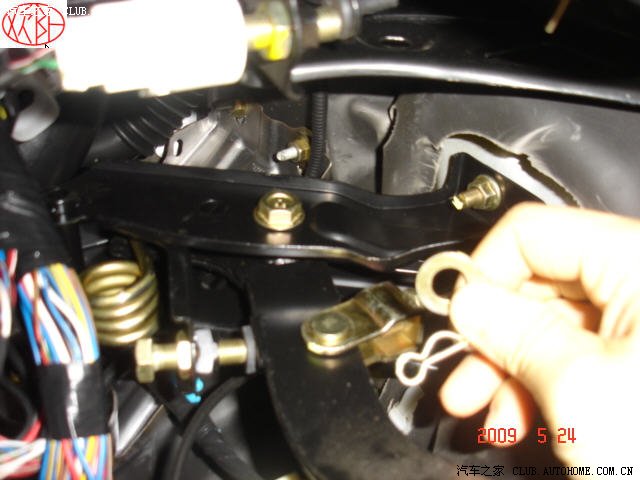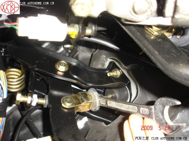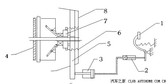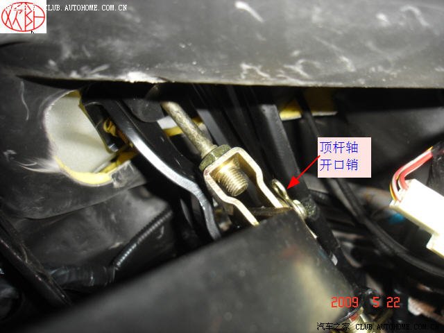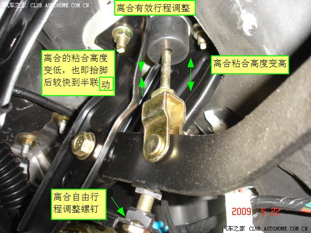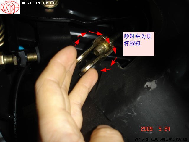 箭头所指的方向为:一是调整后推杆如箭头方向变长,这样会使离合抬高多点才到离合接合点.