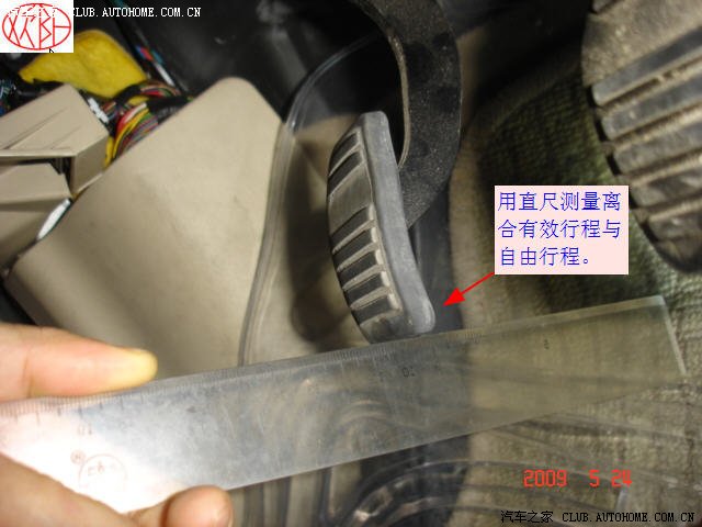 2.用手按压离合器踏板并在感到有阻力时测量踏板下降距离。