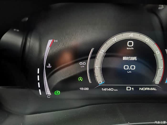 这是自动启停工作时的状态,可以看到车辆已经熄火,转速为0,顺时油耗为0,但这个时候你的右脚还在刹车上,松开刹车,就会点火