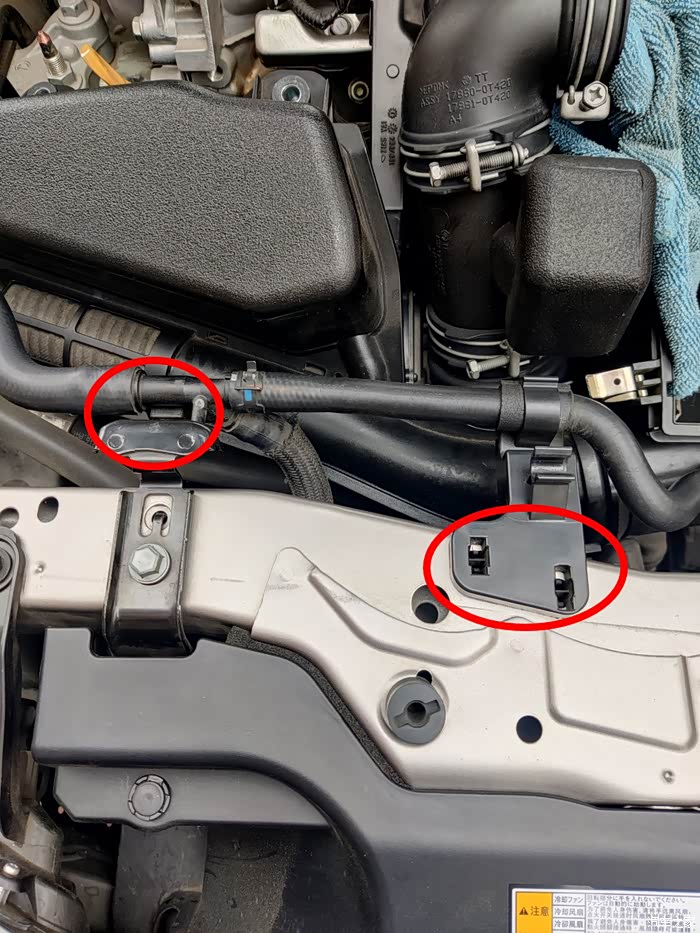 红圈处卡子拆开,方便拆下空气滤清器总成。