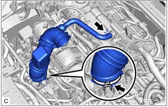 拆下PCV阀和进气端口的废气软管。