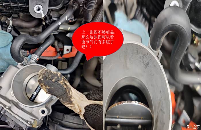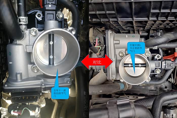 左图是去年十一长假,闲来无事自己清洗过后的节气门照片(是不是很亮?),右图为本次加装过滤时拆开的节气门照片。对比一下,区别不大?好吧!请继续往下看。