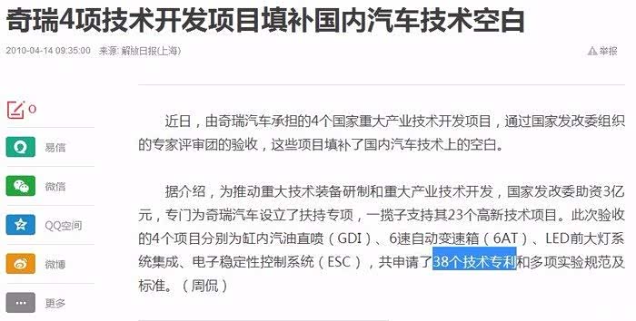 果然,奇瑞专利太牛逼了,菊花鸡和6AT,随便搞搞就有38个专利